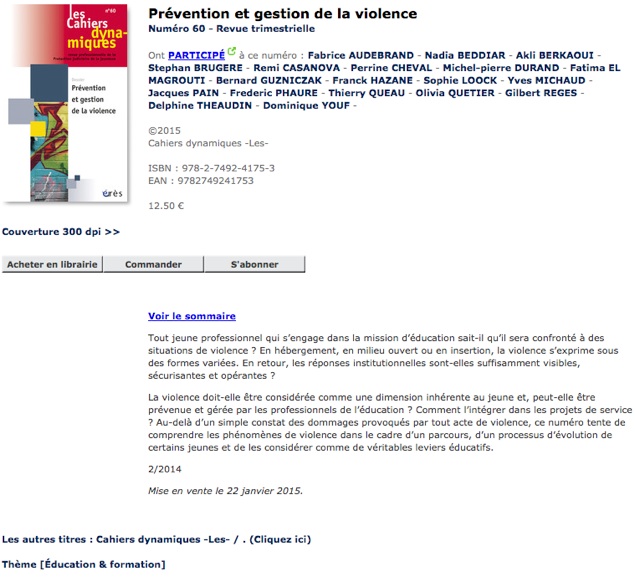 En savoir plus <http://www.editions-eres.com/parutions/education-et-formation/cahiers-dynamiques-les-/p3476-prevention-et-gestion-de-la-violence.htm>