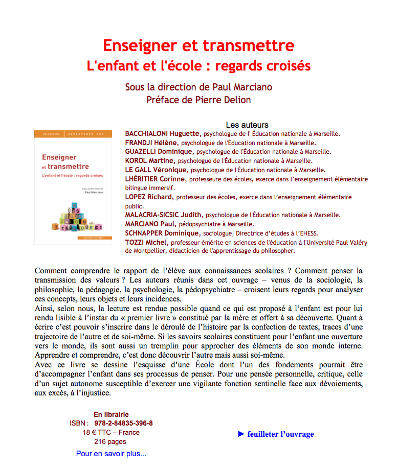 Parution : Enseigner et transmettre, l’enfant et l’école